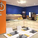 Gezinsvriendelijk hotel op een handige locatie, biedt onberispelijke kamers. Mijn kamer is voorzien van een keukenhoek, een eethoek en een elektrische waterkoker.